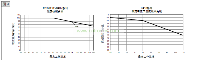 保險(xiǎn)絲是一種溫度敏感器件。因此,工作溫度對(duì)保險(xiǎn)絲性能和壽命具有一定影響。保險(xiǎn)絲選型時(shí)應(yīng)考慮工作環(huán)境溫度。圖4給