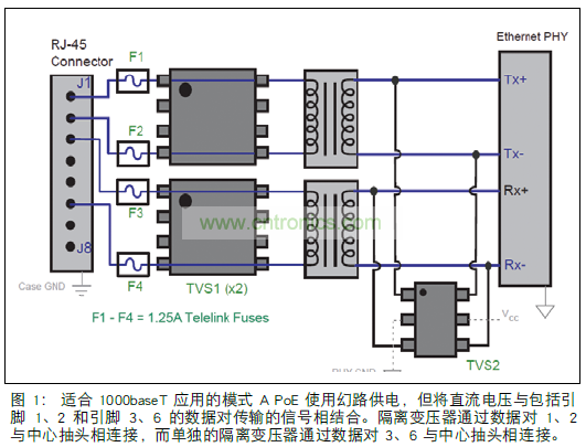 不采用縱向模式的方法可能只要求一個(gè)數(shù)據(jù)對(duì)安裝一根保險(xiǎn)絲,適用于較低數(shù)據(jù)速率的以太網(wǎng),例如 10BaseT。 對(duì)于 100 和 1000BaseT 系統(tǒng),謹(jǐn)慎起見,將相同的保險(xiǎn)絲組件置于數(shù)據(jù)對(duì)的兩個(gè)引腳中,以保護(hù)回路平衡。