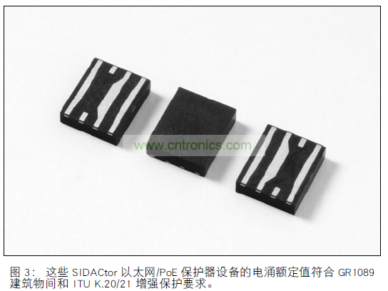 TVS3 是一種 2.5V TVS 二極管陣列,它在耦合變壓器的芯片側(cè)提供三級(jí)保護(hù)。 這種方法符合 GR 1089Core 第 6版的電涌和電源故障要求,適用于建筑物內(nèi)和建筑物間PoE。 您可以使用 0.3 A PTC 設(shè)備取代保險(xiǎn)絲,以符合ITU K.20/21(增強(qiáng)和基本)要求,其中包含 10BaseT 以太網(wǎng)的協(xié)調(diào)條款。