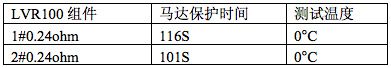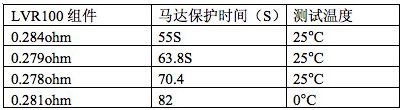 選取兩片 Rmin 電阻 0.22ohm 的 LVR100 和功率電阻集成的組件,下面表 1 為馬達(dá)的保護(hù)時(shí)間。