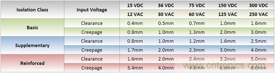 這就是為什么UL定義了三種不同的隔離等級,明確提出電氣間隙和爬電距離。電氣間隙是兩點之間的直線距離,爬電距離是沿著表面的路徑。要符合最低UL“基礎”等級,一個24VDC輸入電壓的轉(zhuǎn)換器,它的電氣間隙和爬電距離分別是0.5mm和1.0mm。要達到“補充”等級,這些值要翻倍達到1.0mm和2.0mm。要達到加強隔離的最高等級,上述的轉(zhuǎn)換器必須要滿足2.0mm和4.0mm的電氣間隙和爬電距離,這已是“基礎”等級的四倍了。