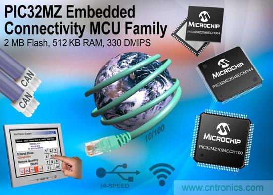 全球領先的整合單片機、混合信號、模擬器件和閃存專利解決方案的供應商——Microchip Technology Inc.(美國微芯科技公司)宣布推出兩款最新創(chuàng)新產(chǎn)品。擁有24款器件的全新PIC32MZ嵌入式連接(EC)系列32位MCU提供了330 DMIPS和3.28 CoreMarks™/MHz的卓越性能,以及有雙存儲區(qū)的現(xiàn)場升級閃存(高達2 MB)、512 KB的大容量RAM,以及支持當今要求嚴苛的應用所需的連接外設。同時,Microchip還推出了業(yè)界最全面的32位單片機固件開發(fā)框架——MPLAB® Harmony。該框架是第一款把許可、轉售及支持Microchip和第三方中間件、驅動程序、函數(shù)庫和實時操作系統(tǒng)集成于一體的產(chǎn)品,簡化了包括全新PIC32MZ系列在內的所有32位MCU的開發(fā)過程,縮短了集成和上市所需的時間。