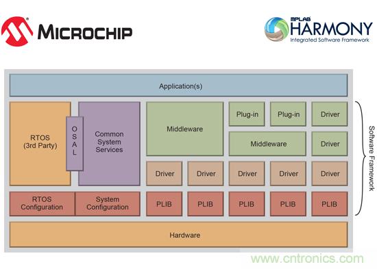 [page]Microchip的全新MPLAB Harmony框架提供了一個將經(jīng)過Microchip測試、調試和可互操作的代碼集于一體的抽象而靈活的統(tǒng)一代碼源,從而有助于進一步縮短開發(fā)時間并降低成本。此外,Harmony提供了一個模塊化架構,能夠高效集成多個驅動程序、中間件和函數(shù)庫,同時提供一個獨立于實時操作系統(tǒng)的環(huán)境。預驗證和集成不僅加快了開發(fā),而且也提高了重復使用率。目前,Harmony框架中包括來自Express Logic、FreeRTOS、InterNiche、WITTENSTEIN High Integrity Systems和wolfSSL等第三方的產(chǎn)品,還有許多正在開發(fā)中。