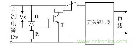 直流LED開關(guān)電源中開關(guān)穩(wěn)壓器的過電壓保護(hù)包括輸入過電壓保護(hù)和輸出過電壓保護(hù)。如果開關(guān)穩(wěn)壓器所使用的未穩(wěn)壓直流電源(諸如蓄電池和整流器)的電壓如果過高,將導(dǎo)致開關(guān)穩(wěn)壓器不能正常工作,甚至損壞內(nèi)部器件,因此LED開關(guān)電源中有必要使用輸入過電壓保護(hù)電路。圖3為用晶體管和繼電器所組成的保護(hù)電路,在該電路中,當(dāng)輸入直流電源的電壓高于穩(wěn)壓二極管的擊穿電壓值時(shí),穩(wěn)壓管擊穿,有電流流過電阻R,使晶體管T導(dǎo)通,繼電器動(dòng)作,常閉接點(diǎn)斷開,切斷輸入。輸入電源的極性保護(hù)電路可以跟輸入過電壓保護(hù)結(jié)合在一起,構(gòu)成極性保護(hù)鑒別與過電壓保護(hù)電路。