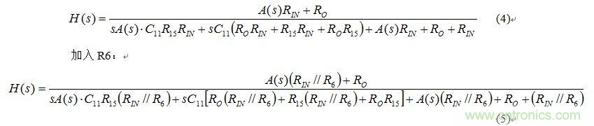 從系統(tǒng)函數(shù)來看仍然不能得到結(jié)果,因?yàn)椴恢繟(s),Rin,Ro的值,無法得到R6的加入為什么能將原來的極點(diǎn)數(shù)減少兩個(gè)。