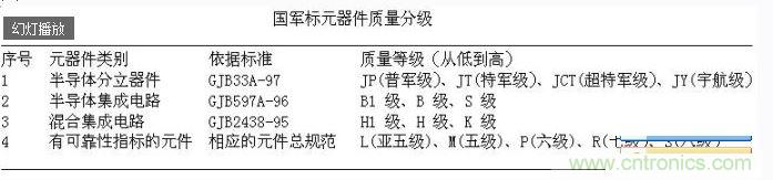 2、電子元器件的質(zhì)量等級(jí)