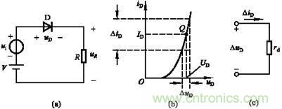 圖(a)電路(b)二極管伏安特性(c)二極管的動態(tài)電阻