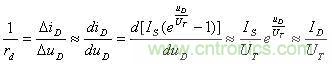 rd是用以Q點為切點的切線斜率的倒數(shù)。顯然,Q點在伏安特性上的位置不同,rd的數(shù)值將不同。根據(jù)二極管的電流方程