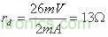 ID為靜態(tài)電流,常溫下UT=26mV??芍?,靜態(tài)電流ID越大,rd將越小。設(shè)UD=0.7V時,ID=2mA。由此可得直流電阻RD=350,而動態(tài)電阻(交流電阻)