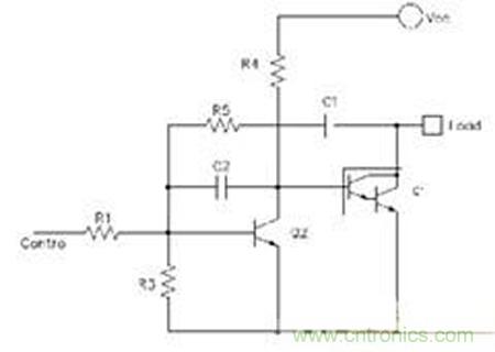先來看看電路在沒有C2的情況下是如何工作的:控制端由低電平拉升到高電平的過程中,集電極電流增長使得三極管從截止區(qū)—》放大區(qū)—》飽和區(qū)變化,從而使三極管從關斷狀態(tài)(截止)變?yōu)殚_通狀態(tài)(飽和),注意,開通過程中,集電極電流增長全部靠Vcc提供;反過來,控制端從高電平變?yōu)榈碗娖竭^程中,通過R3對基極電荷的泄放,加速控制三極管從飽和區(qū)—》放大區(qū)—》截止區(qū)變化,并最終變?yōu)殛P斷狀態(tài)。