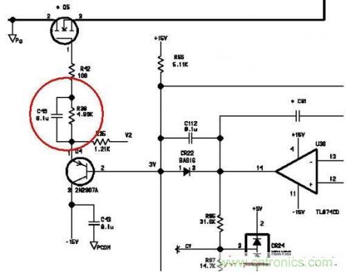 在此之前,如果看到C49和R39,恐怕很多壇友會(huì)很難理解其作用,然而這也正是體現(xiàn)模擬電路設(shè)計(jì)水平之處。有人感嘆36xx系列電路的復(fù)雜,然而內(nèi)行看門道,其實(shí)真正吃功夫的地方恰在幾只便宜的0805電阻和電容上,而非那些一眼即可看出的LM399、AD712之類的昂貴元件。