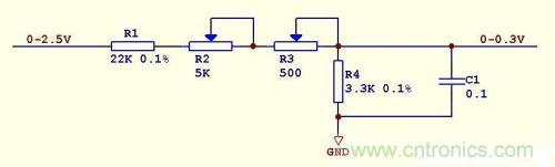 對地電阻并電容C1,獲得低通濾波器,轉(zhuǎn)折頻率f=1/2piC1(R4//(R1+R2+R3))《zc=1kHz,C1》0.054uF,實(shí)際取0.1uF。