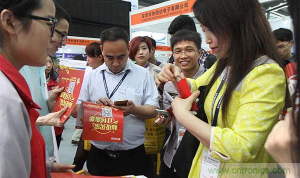電子商務(wù)平臺(tái)的崛起,也使得營銷手段更加花樣百出地貼近消費(fèi)者,再也不是以前坐等顧客上門挑選的被動(dòng)局面,分銷商在展館里可謂是使出十八般武藝,力圖能激起消費(fèi)者翻牌的欲望。這不,原先四處走動(dòng)的觀眾,瞬間被抽中一百塊現(xiàn)金紅包的歡呼聲給吸引了過去,筆者也前往一探究竟,原來是華強(qiáng)電子網(wǎng)的展位上進(jìn)行的免費(fèi)認(rèn)證超級(jí)買家抽紅包的活動(dòng)。