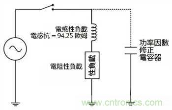 功率因數(shù)修正的目標(biāo)為將電壓與電流之間的相位差降至最低。電容抗可用于將電感抗帶回系統(tǒng)僅有的電阻相位中。只需要有正確特質(zhì)的電容器,亦即有夠高的功率比率以及與電感抗有180度的反相(圖1)。