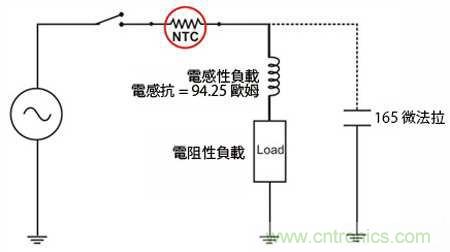 為限制涌浪電流,將NTC熱敏電阻放置于電源以及PFC電容器和電感性負(fù)載電容器之間(圖2)。開(kāi)機(jī)時(shí),NTC熱敏電阻溫度低,故能提供高電阻。除了限制進(jìn)入電容器中的電流外,此高電阻產(chǎn)生的熱能將提高熱敏電阻的溫度。