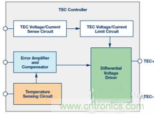 設計電信系統(tǒng)中激光二極管的TEC控制器系統(tǒng)是一項很復雜的工作。除了熱精度方面的挑戰(zhàn)之外,封裝尺寸通常非常小,功耗容差也很低。一般而言,設計精良的TEC控制器應具備如下優(yōu)點:精準溫度調節(jié)、高效率、板尺寸很小、低噪聲、電流和電壓監(jiān)控與保護。