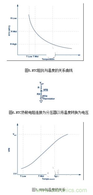 圖5顯示了負溫度系數(shù)(NTC)熱敏電阻在溫度范圍內的阻抗。由于它與溫度具有相關性,因此可將其連接為分壓器,從而將溫度轉換為電壓。典型連接如圖6所示。當RTH隨溫度而變化時,VFB也會變化。增加一個Rx與熱敏電阻串聯(lián),便可相對于VREF將溫度電壓傳遞函數(shù)線性化,如圖7所示。必須將其與模塊殼內部的激光器緊密耦合,隔絕外部溫度波動影響,使其能精確檢測溫度。