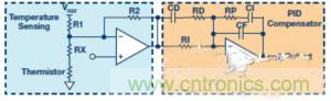 圖8.使用ADN8834內部兩個斬波放大器的熱反饋環(huán)路圖