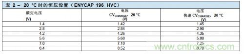 表2顯示了20 °C時標準配置的正確充電電壓。