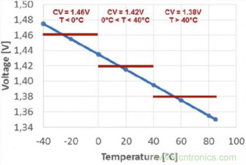圖1.充電電壓是溫度的函數(shù)