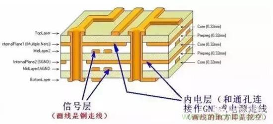 通常簡(jiǎn)稱(chēng)為內(nèi)電層,僅在多層板中出現(xiàn),PCB板層數(shù)一般是指信號(hào)層和內(nèi)電層相加的總和數(shù)。與信號(hào)層相同,內(nèi)電層與內(nèi)電層之間、內(nèi)電層與信號(hào)層之間可通過(guò)通孔、盲孔和埋孔實(shí)現(xiàn)互相連接。