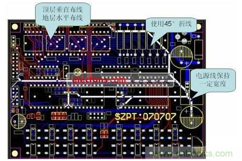 總的連線盡可能短,關(guān)鍵信號線最短;高電壓、大電流信號與小電流,低電壓的弱信號完全分開;模擬信號與數(shù)字信號分開;高頻信號與低頻信號分開;高頻元器件的間隔要充分。