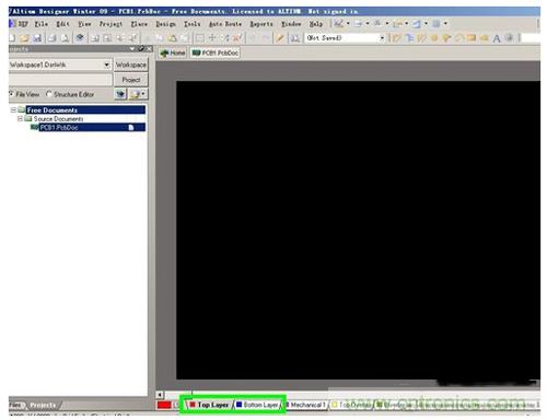 可以看到建好的PCB只有兩個(gè)層,Top Layer 和 Bottom Layer。如下圖所示。