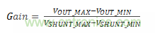 計算放大器的增益。運算放大器放大VSHUNT以產(chǎn)生VOUT_MIN到VOUT_MAX的輸出電壓擺幅,其中VOUT_MIN 和VOUT_MAX分別是放大器的最小和最大輸出擺幅極限。公式3用于計算放大器產(chǎn)生所需的輸出擺幅的增益: