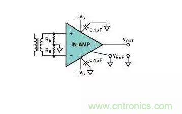 圖6.正確的儀表放大器變壓器輸入耦合方法