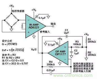 圖11.將運(yùn)算放大器緩沖器接成有源濾波器驅(qū)動(dòng)儀表放大器的參考輸入引腳