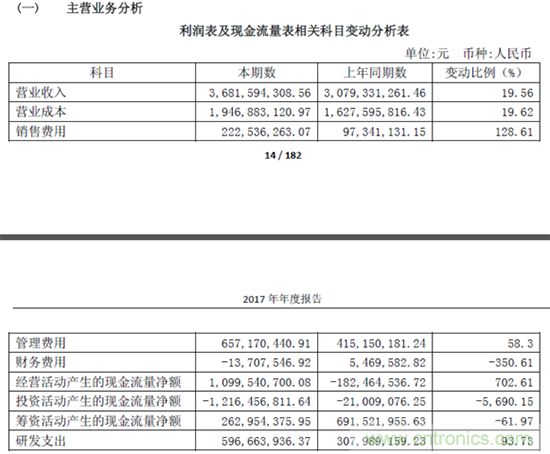 匯頂科技近日還發(fā)布了2017年年度報(bào)告以及2018年第一季度報(bào)告,報(bào)告顯示,公司2017年實(shí)現(xiàn)銷售收入約36.82億元,同比增長(zhǎng)19.56%;歸屬于上市公司股東的凈利潤(rùn)為8.87億元,同比增長(zhǎng)3.52%。