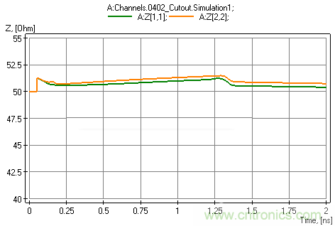 圖5圖6對(duì)比,發(fā)現(xiàn)未處理之前阻抗的跳躍很明顯,隔層處理后的阻抗改善很多,幾乎沒(méi)有任何階躍與不連續(xù)。