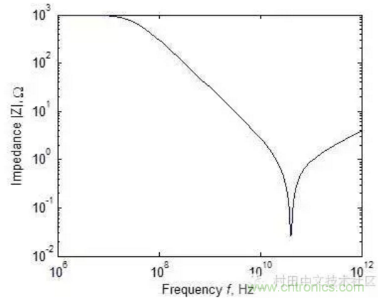 一個(gè)典型的1pF電容阻抗絕對(duì)值與頻率的關(guān)系