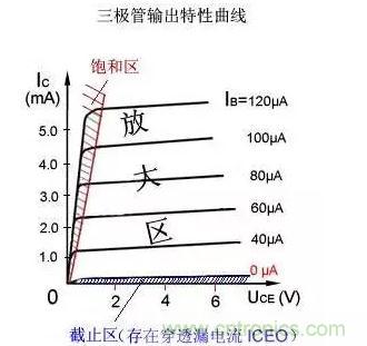 當(dāng)IB很大時(shí),IC變得很大,不能繼續(xù)隨IB的增大而增大,三極管失去放大功能,表現(xiàn)為開關(guān)導(dǎo)通。