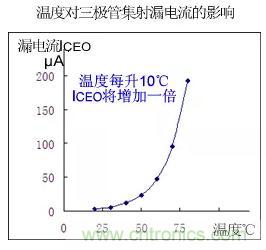 雖然常溫下硅管的漏電流ICEO很小,但溫度升高后,漏電流會(huì)高達(dá)幾百微安以上。
