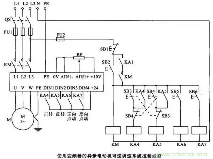 25. 使用變頻器的異步電動機可逆調速系統(tǒng)控制線路