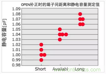 <OPEN補(bǔ)正時(shí)的重點(diǎn)>OPEN補(bǔ)正端子間距離和靜電容量測(cè)定結(jié)果