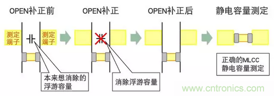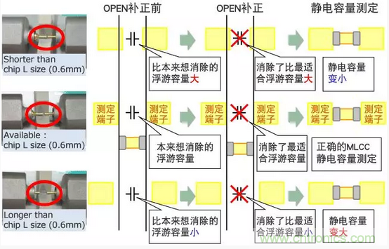 OPEN補(bǔ)正端子間距離和MLCC L寸法不一樣的狀態(tài)下進(jìn)行補(bǔ)正、治具自身的浮游容量就不能得到正確的0補(bǔ)正。