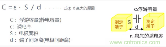 鑷子型的治具和夾具型的相比、測(cè)定端子先端的面積(式①的S)大、所以因端子間距離的差異而產(chǎn)生的靜電容量測(cè)定值的變動(dòng)也大。