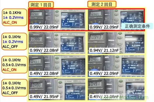 對(duì)于大容量MLCC、ALC 設(shè)置OFF時(shí)測(cè)定電壓值不滿足測(cè)定條件