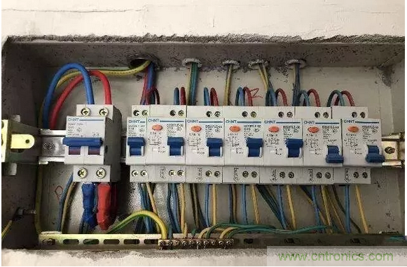 空氣開關作為總開關安裝在最前面,后面除了照明回路都使用漏電開關的安裝方式優(yōu)點很明顯:首先某個回路漏電時只是這個回路跳閘,不會跳總閘,不影響我們使用;其次由于它每次都是跳的相應的分開關,所以很容易找到哪個回路的電路出現故障,故障排查方便;最后它也不會誤動作;