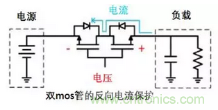 如下所示,利用2個MOS管背靠背地連接是一個不錯的解決方案。當2個MOS管關(guān)閉,它們可以阻斷兩個方向電流的流通。與二極管的解決方案相比,MOS管可以支持更低的電源壓降供應給負載。但是,如果要實現(xiàn)這種方案,需要多個元器件配合,使得電路會在電路板上占用更多的空間。