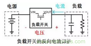 與MOS管一樣,負載開關(guān)可在關(guān)閉時阻止兩個方向上的電流(如下圖設計)。