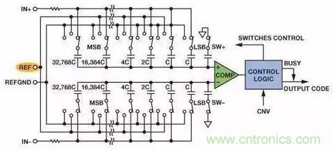 每個時鐘沿,比較器對電容上的電壓和地作比較, 由此結(jié)果來決定下一個電容是否接入電路。