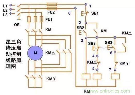 線圈失電,同時(shí)KM△自鎖。SB3的按鈕開關(guān)常開點(diǎn)串KM△的線圈常閉點(diǎn)串KMY的線圈。