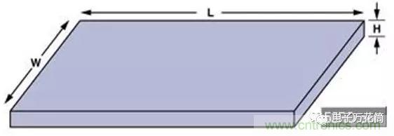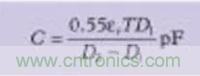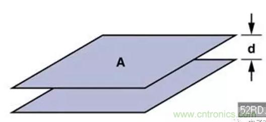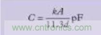 當(dāng)尋找有問題的寄生源時,可能用得著幾個計算上述那些寄生電容尺寸的基本公式。(公式一)是計算平行極板電容器的公式,如(圖五)。