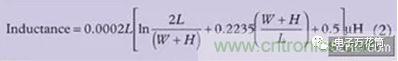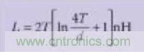 帶狀電感是另外一種需要考慮的寄生效應(yīng),它是由于印制線過長或缺乏接地平面引起的。(公式二)顯示出計算印制線電感(Inductance)的公式。可參考(圖六)。