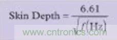 在高頻段,必須考慮一種稱為趨膚效應(yīng)的現(xiàn)象。趨膚效應(yīng)會引起電流流向?qū)Ь€的外表面,結(jié)果會使得導(dǎo)線的橫截面變窄,因此使直流(DC)電阻增大。雖然趨膚效應(yīng)超出了本文討論的范圍,這里還是給出銅線中趨膚深度(Skin Depth)的一個很好的近似公式(以cm為單位):