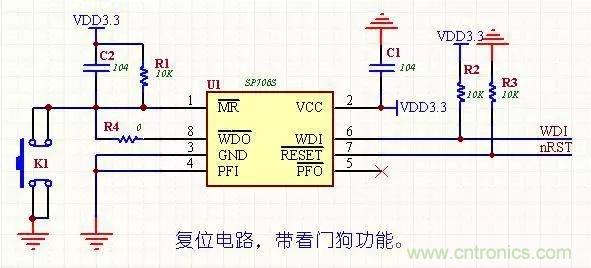 帶看門(mén)狗和手動(dòng)復(fù)位,價(jià)格便宜(美信的貴很多),R4為調(diào)試用,調(diào)試完后焊接好R4。