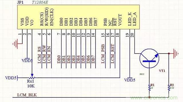 7、LCM12864液晶模塊(ST7920)本電路是常見(jiàn)的12864電路,價(jià)格便宜,帶中文字庫(kù)??梢酝ㄟ^(guò)PSB端口的電平來(lái)設(shè)置其工作在串口模式還是并行模式,帶背光控制功能。